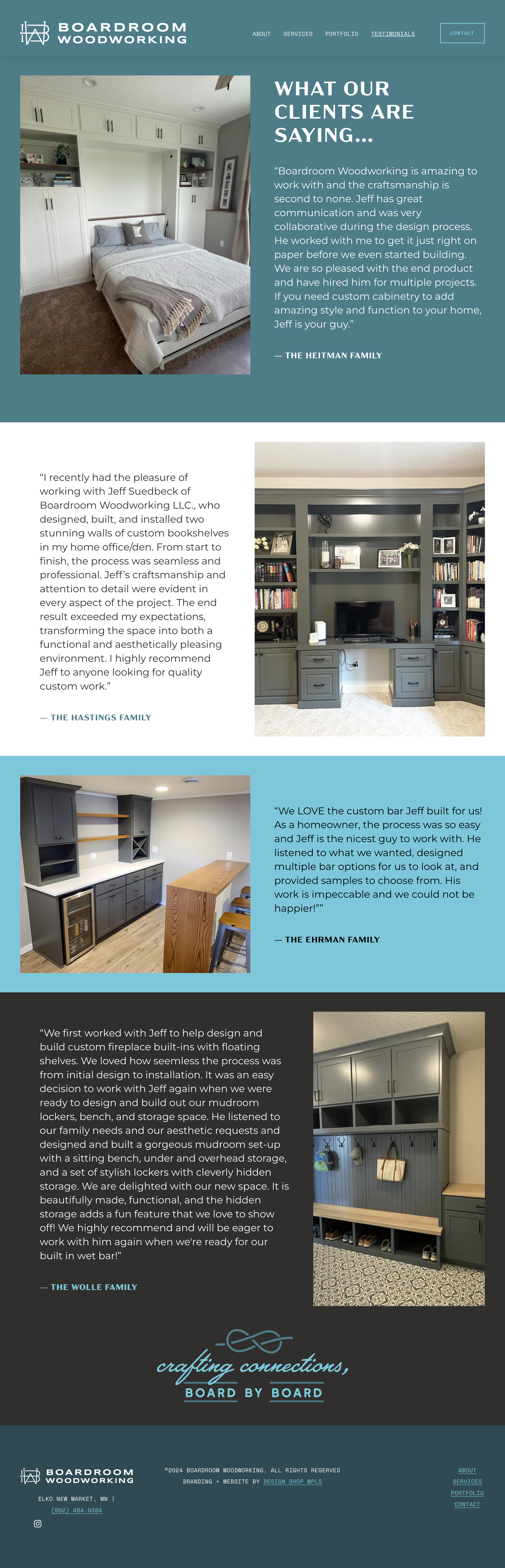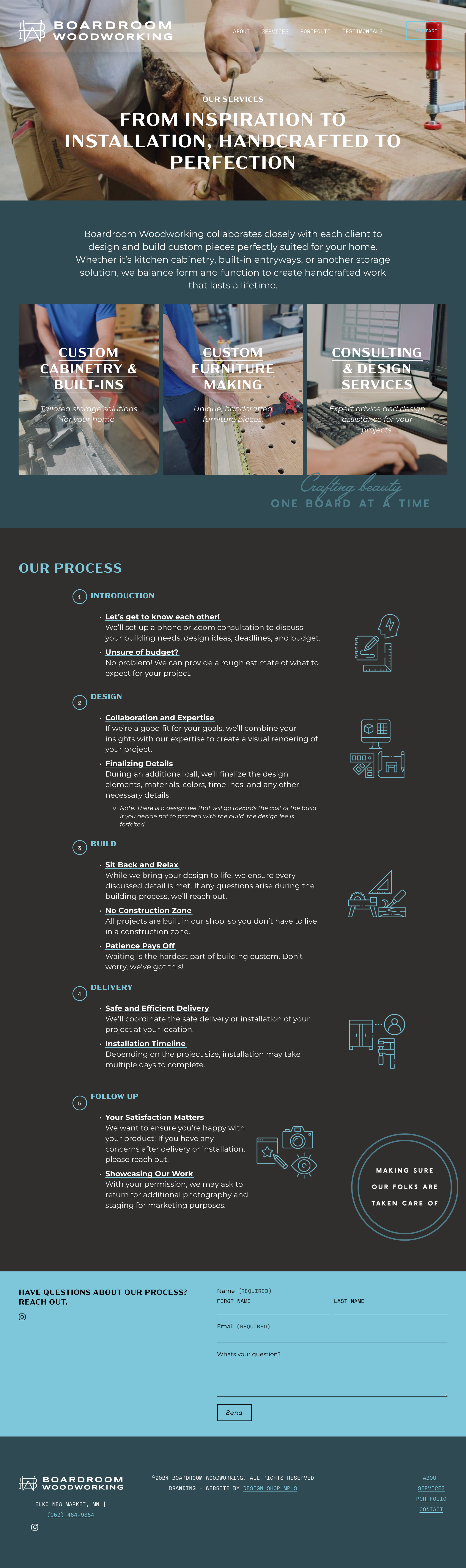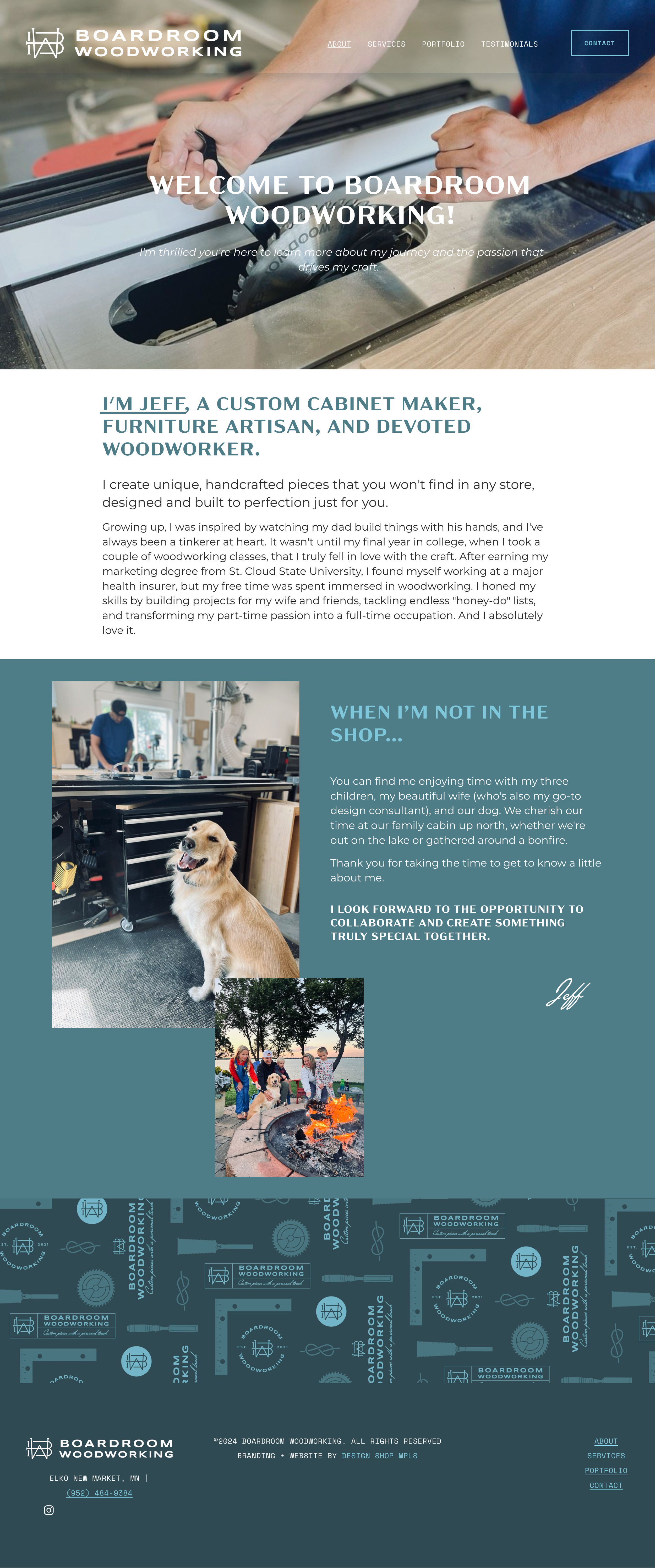 Boardroom Woodworking was ready for a rebrand. Jeff was transitioning from the corporate world to launching his career as a full-time custom woodworker, and he needed an identity that reflected both his personality and his craftsmanship. The brand had to work hard—not only as a logo but also as a mark that could be branded onto each piece of furniture he created.