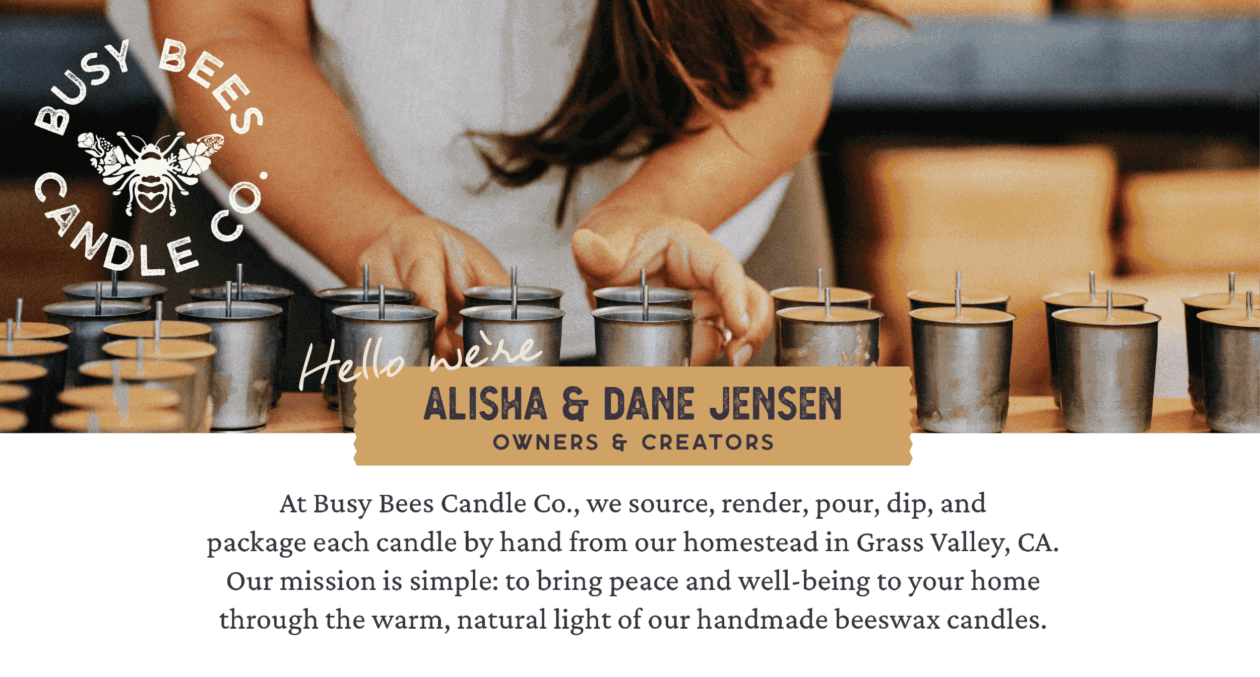 Busy Bees Candle Co. makes handmade 100% pure beeswax candles from their California family farm. Slow burning, smokeless, and cultivated with a mission to help save the bees—every candle supports the regrowth of bee colonies.
