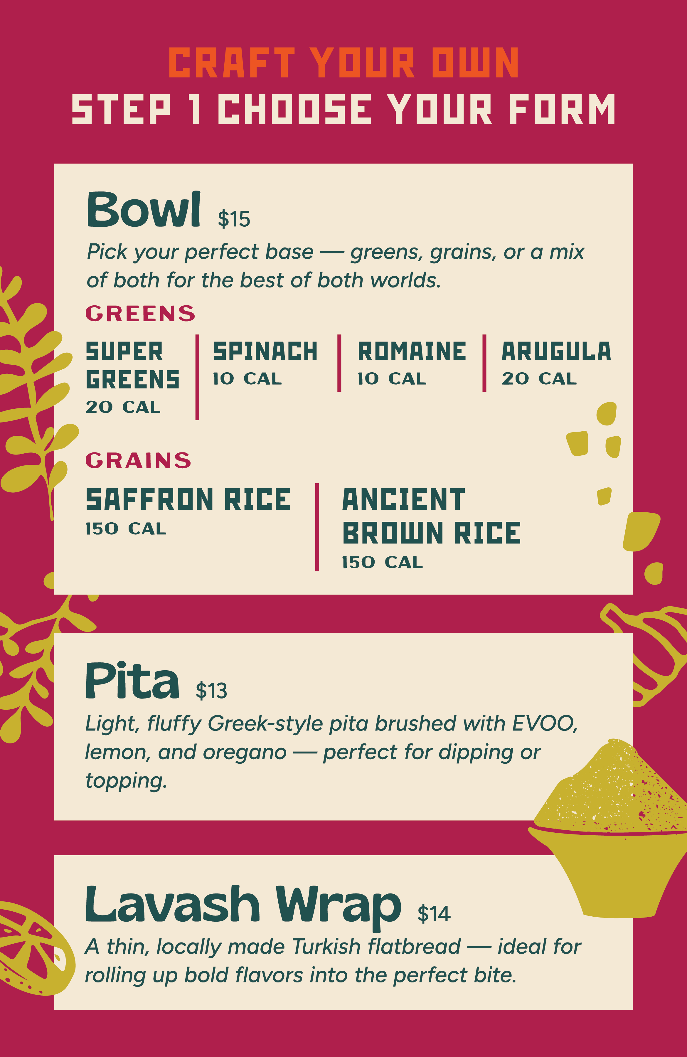 This project was a full-circle moment for me. Years ago, I designed the original restaurant branding while working at an agency—fast forward, and the new owners brought me on to reimagine it under their own vision. With a fresh name, bold flavors, and a more expansive Mediterranean influence, the brand needed a new identity that moved beyond traditional Greek aesthetics. The result? A high-energy, flavor-packed brand that celebrates ingredient quality, vibrant spices, and the art of bold, unforgettable bites.